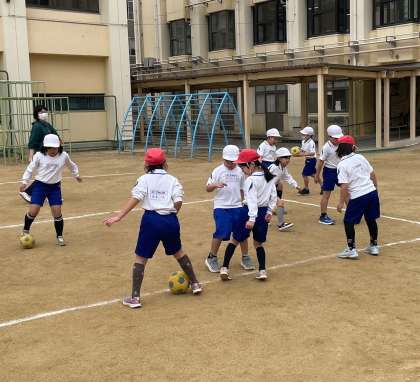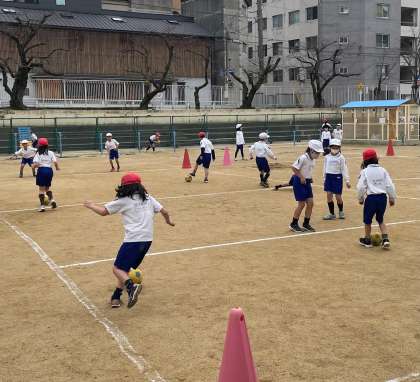 チームで立てた作戦をもとに、ボールをうまくあやつってポイントをゲットしていきます。チームワークが大切ですね。
