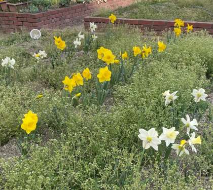 今年も学習園では、スイセンやアブラナがきれいに咲いています。黄・白・緑のコントラストがあざやかです。