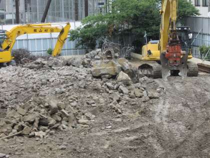 6月に運動場がフェンスで囲われてから遊具の移動や倉庫・うさぎ小屋などが取り壊わされ、7月に旧校舎の埋没している基礎の撤去工事が行われました。