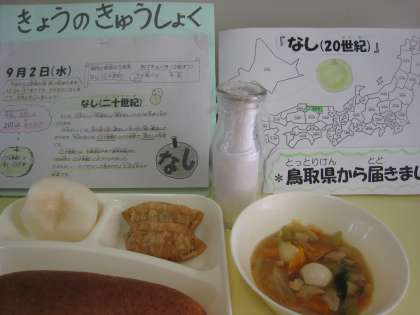 秋の果物『20世紀なし(鳥取県産)』が211個届きました!(9/2の給食)