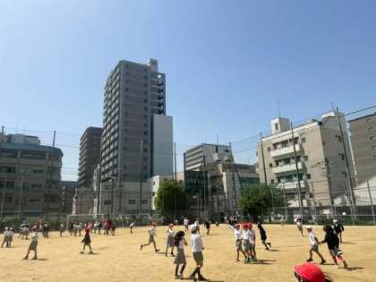 子どもたちは、瓦屋町グラウンドで鬼ごっこをしたり、ドッジボールをしたりして元気に遊んでいます。