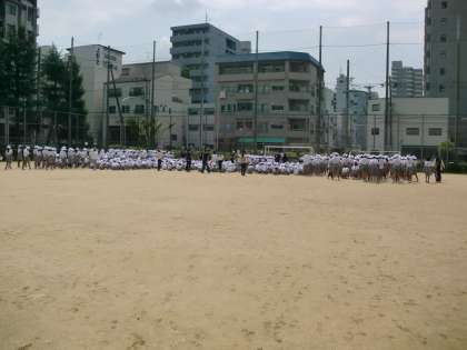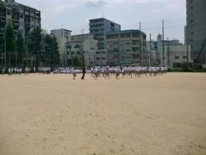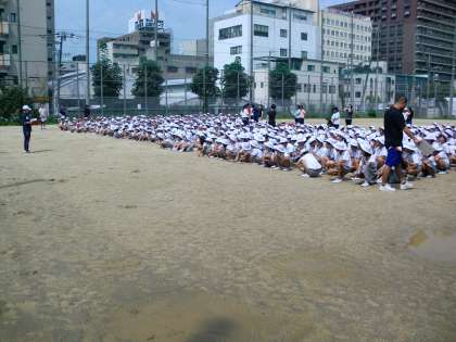 今回は1秒でも速く避難できるようにと、学校のあらゆる門からグランドへと移動しました。
