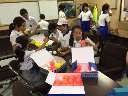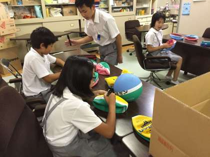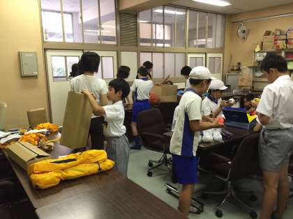 本日、児童会の子どもたち中心に、寄贈された品物ひとつひとつに