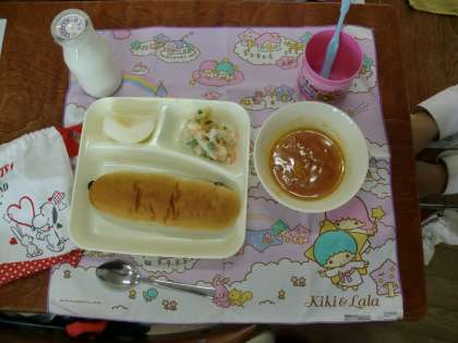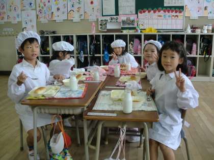今日の給食は、季節の果物、新潟県産のなし(豊水)が出ました。また、子どもたちに大人気のエビグラタンも出て、いつも以上に笑顔あふれる給食となりました。