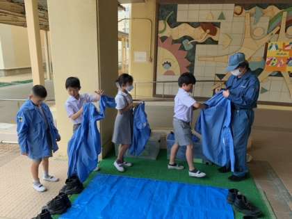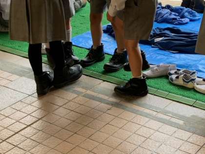 普段は触れることのできない、パッカー車や清掃員さんの服や安全靴などの体験をしました。