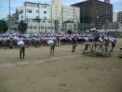 今日の集会は、運動委員会の企画で、ラジオ体操の練習を行いました。