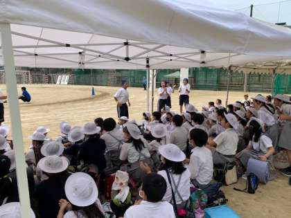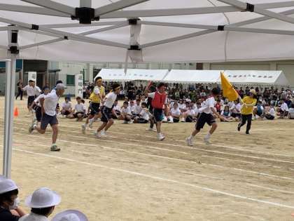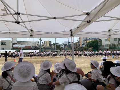 6年生は上町中学校の体育大会を見学させてもらいました。中学生の迫力のある走りに驚いていました。
