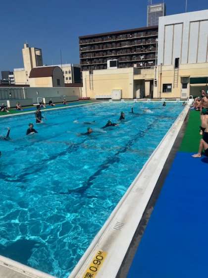5年生のプール開きも天候に恵まれ、快晴の中、行いました。
