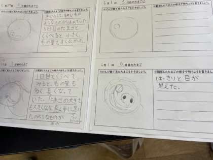 たまごの中で心臓が動いていたり、血液が流れている様子に驚いていました。