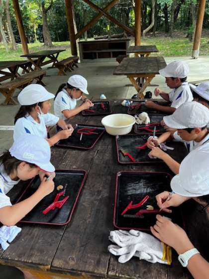 カレーを美味しく食べたあとは、勾玉作りをしました。