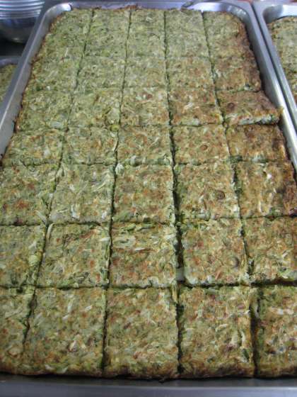 大阪で親しまれている「お好み焼き」が学校給食に登場したのは5年前からで、今年で6回目になります。小麦粉(7k)に山いも(5k)、卵(130個)、キャベツ(17個)、青ねぎ(250本)、粉末かつおぶし(450g)、青のり(200g)を混ぜ合わせて焼いています。食べる時にトンカツソースをかけていただきました。山いもが入っているので、ふっくらと焼き上がりました。5年生の児童からは「キャベツがたっぷり入り、フワッとしてとってもおいしかった」と感想が寄せられました。