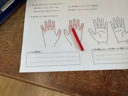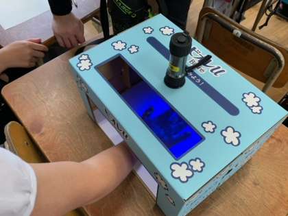 手洗い週間に向けて、ブラックライトを使って汚れが落ちにくい所をチェックしました。