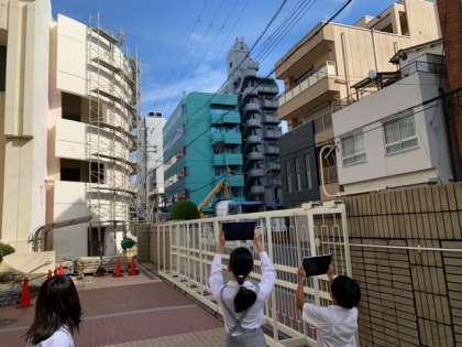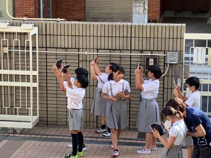 5年生は理科の学習で、雲をタブレットで撮影しました。