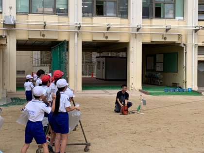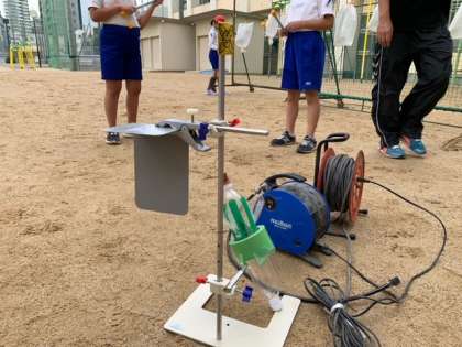学習の最後にペットボトルロケットを打ち上げました。空高く打ち上がったロケットを見て、歓声をあげていました。