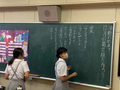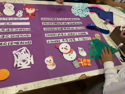 クリスマスの飾り付けをみんなで上手に作っていました。いつも綺麗な掲示で正門を彩ってくれています。