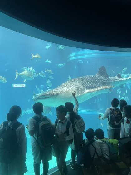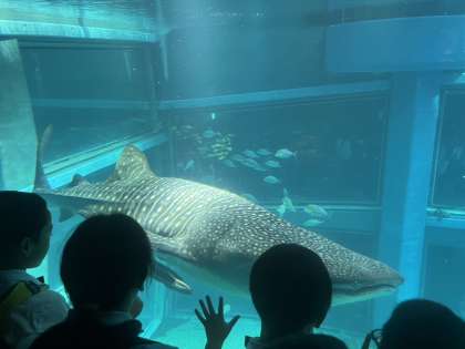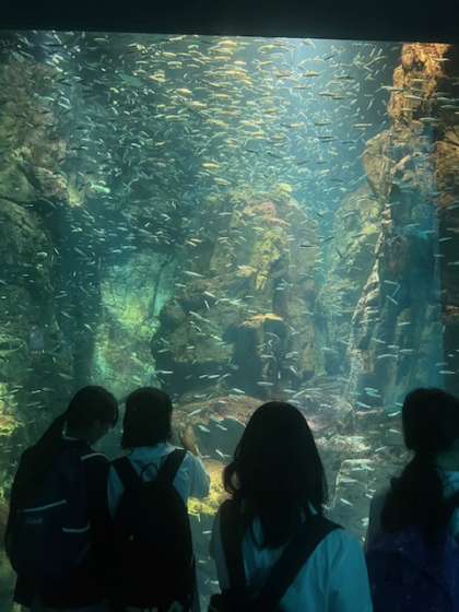 みんな大きな水槽の中を泳ぐ魚たちに興奮しています。