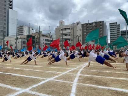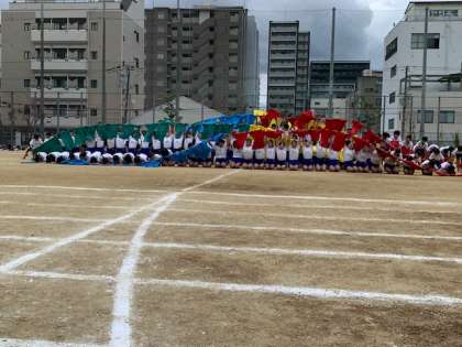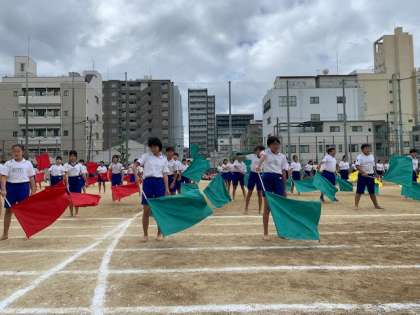 旗の動きがピッタリとそろって、美しさを演出していました。