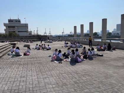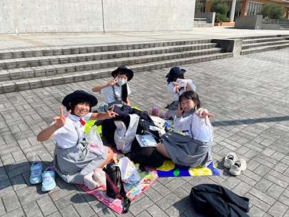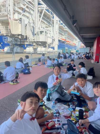 お弁当タイムです。天気も良く、みんな気持ち良くお弁当を味わっています。