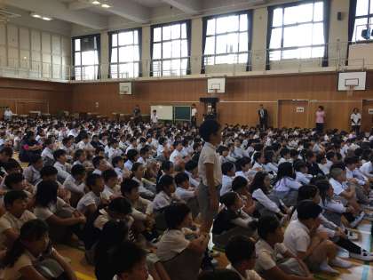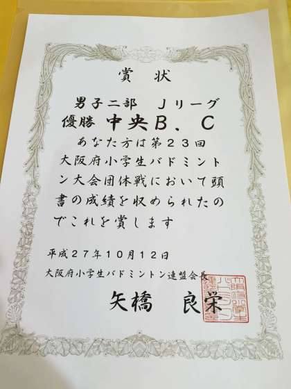 今日の朝会では、中央バドミントンクラブの子どもたちの表彰を行いました。