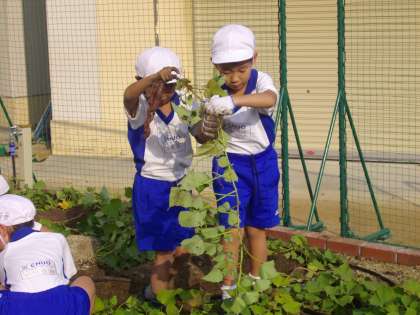 10月20日(火)、おいもほりをしました。5月に植えたサツマイモがグングンと育ち、つるも子どもたちの身長と同じぐらい伸びていました。小さいものから大きいもの、また変わった形のサツマイモに子どもたちは笑顔いっぱいでした♪