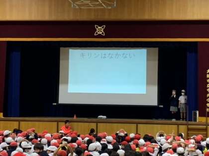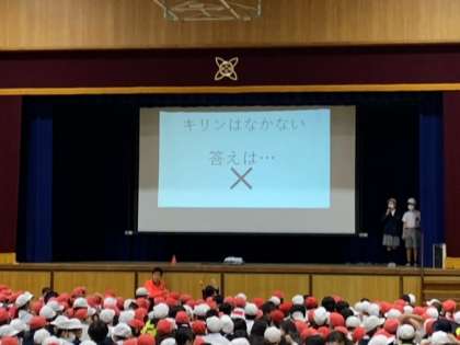 みんなでまるかばつか相談しながら考え、答えました。答えが発表されると「あってたー」「えーそうなん」など歓声が聞こえ、盛り上がりました。