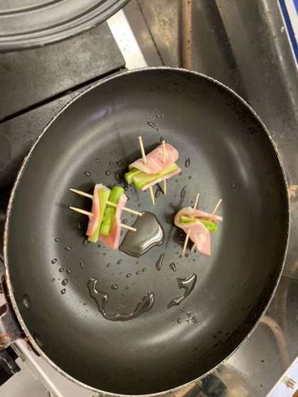ベーコンやじゃがいも、アスパラガスなどを使って、炒め料理やスープを作りました。