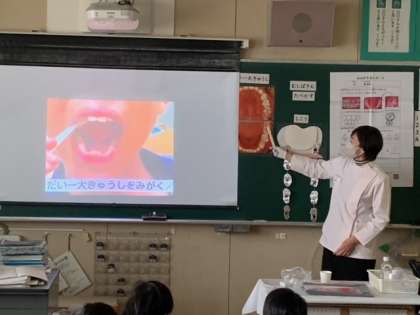 2年生は歯科衛生士の方々に来ていただき、歯みがきについて学習しました。虫歯にならないために歯の磨き方を丁寧に教えていただき、実践していました。これからも歯みがきを続けていって欲しいと思います。