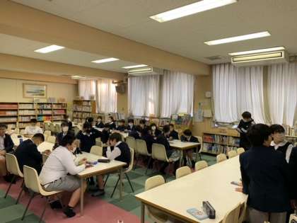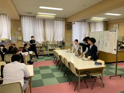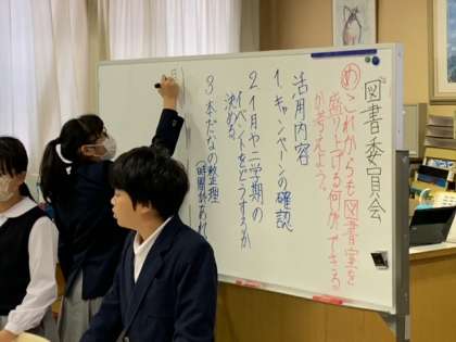 図書委員会は、図書室を盛り上げるためにできることをみんなで話し合っていました。委員長が上手に司会をしていました。