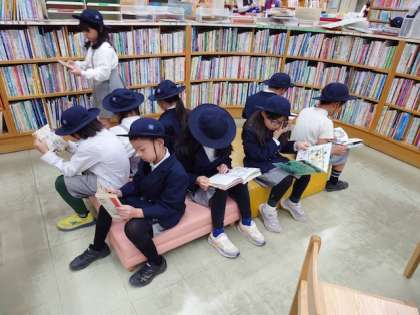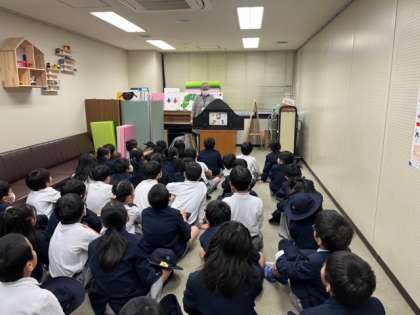 紙芝居を見たり、施設を案内してもらったりしました。たくさんの本に触れ、楽しい時間を過ごしました。
