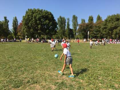 お弁当タイムも終わり、いまから班ごとに考えたゲームをします。