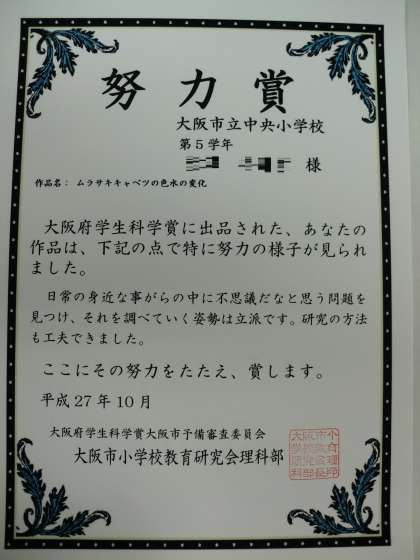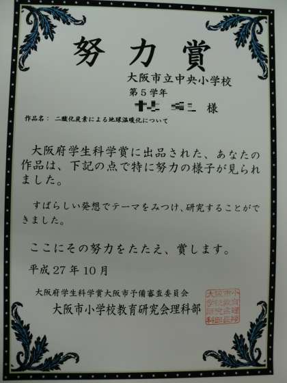 また、夏休みの課題であった自由研究の優秀作品の表彰もありました。