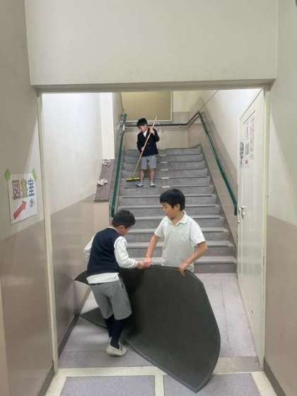 友達と協力しながら学校を綺麗にしました。