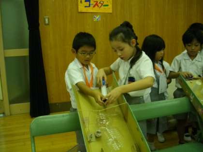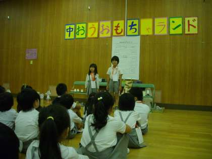 10月22日(木)、1年生を招いておもちゃランドを行いました。2年生は、生活科の学習でダンボールやトイレットペーパーの芯を使って、おもちゃを作りました。1年生が楽しめるように工夫し、一生懸命作りました。「楽しかった!」と笑顔の1年生に、2年生もうれしい気持ちになりました♪