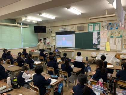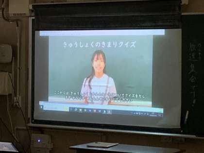 児童集会で給食委員会の発表ビデオを見ました。