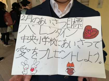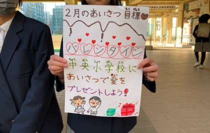 児童会のメンバーが今週も元気にあいさつをしています。寒い中ですが、朝から元気なあいさつを聞くと、心も体も温かくなる気がします。
