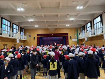 集会委員さんが言った数だけ、班の中で立ち上がったら勝ちとういうゲームです。ゲームの中でこれまでお世話になった6年生に感謝の気持ちを伝える場面もありました。みんなで盛り上がって楽しみました。