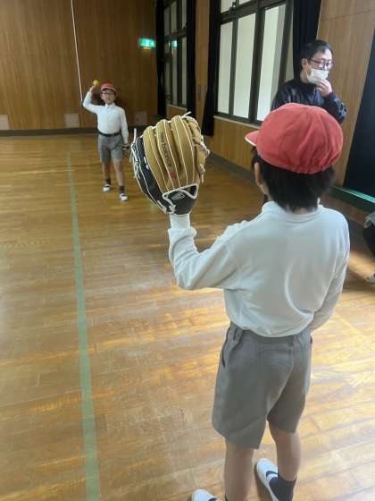 「野球しようぜ」というメッセージと共に届いたグローブに触れ、子どもたちは興奮しながらキャッチボールをしていました。