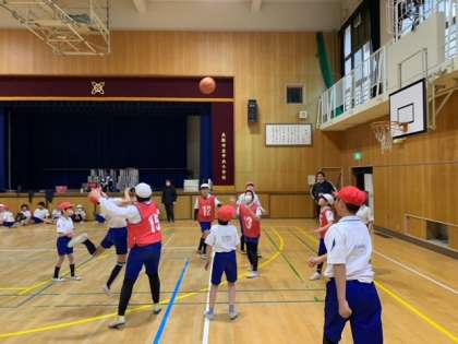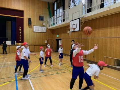 機械運動クラブは卒業式に向けて跳び箱やマットが片付けられていたので、バスケットボールクラブと一緒にバスケットボールをしました。