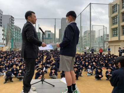 たくさんの表彰があり、校長先生から賞状をいただき、みんなでお祝いしました。