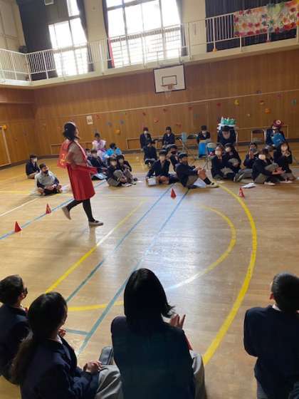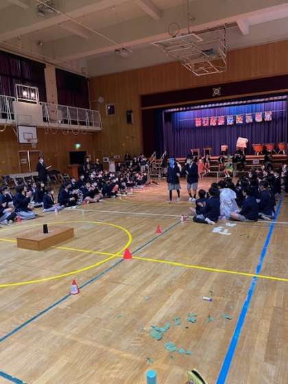 6年生全体のお楽しみ会を開き、手作りのファッションショーをしました。