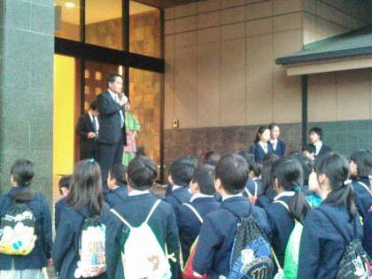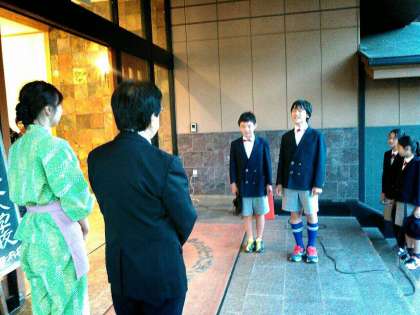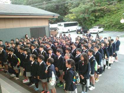 宿舎に到着しました。開舎式を行い、これから子どもたちは部屋班に分かれ、今日泊まる部屋へ向かいます。