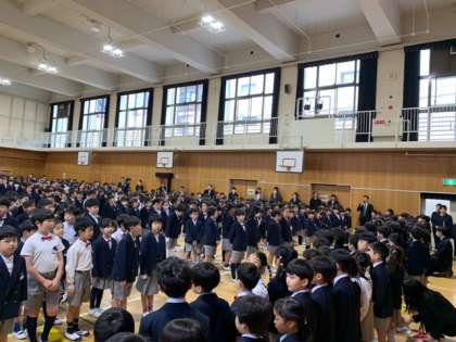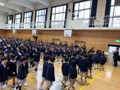 みんなで、かわいいかわいい1年生を拍手で迎えました。新6年生の児童代表の言葉や新1年生からのお礼の言葉もあり、みんなで新1年生を温かく迎えました。