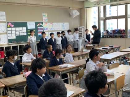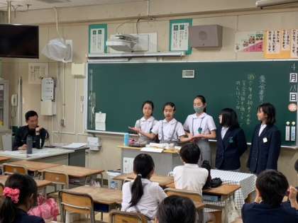集会委員会では活動していけるかどうか心配している5年生に、6年生が励ましの言葉をかけていました。