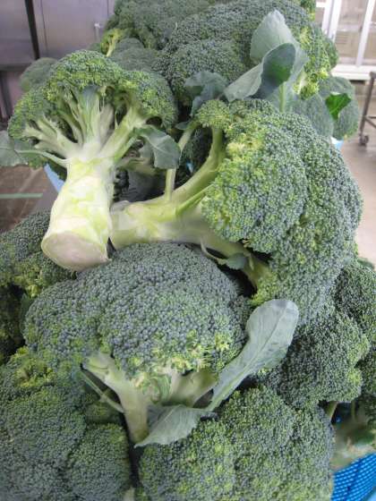 ブロッコリーは地中海沿岸原産の野生のキャベツを改良したものです。2000年前からローマ人がよく食べていたそうで、ブロッコリーの名はイタリア語の芽、茎を指すブロッコの複数形です。日本へは明治初期に伝わりましたが、よく食べられるようになったのは1970年代からです。品質のよいものが収穫できるのは11〜3月で、霜の季節の野菜です。給食では11〜2月に登場します。含まれている栄養成分のバランスのよさが優等生の野菜てす。