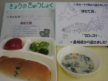 「ほたて貝のクリームシチュー」は人気献立であり、笑顔あふれる給食タイムとなりました。