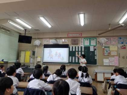 1年生は国語科で「あいうえおのうた」を学習しました。初めての参観でしたが、どの子もやる気満々で頑張っていました。