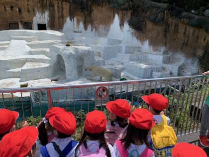 元気に動き回るシロクマを見れて、子どもたちもうれしそうです。