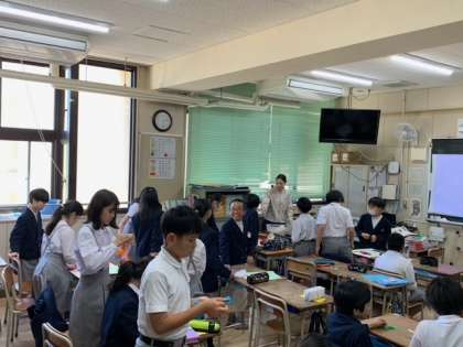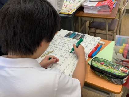 新聞委員会さんは、新しい新聞の掲示に向けて準備作業を進めていました。