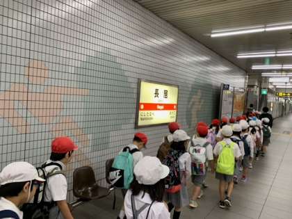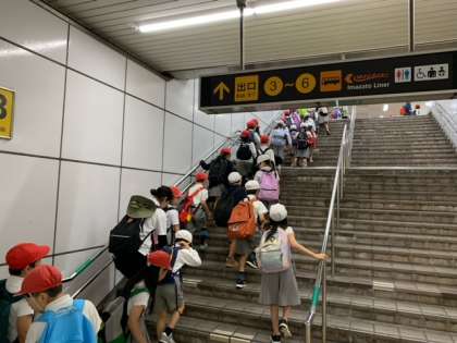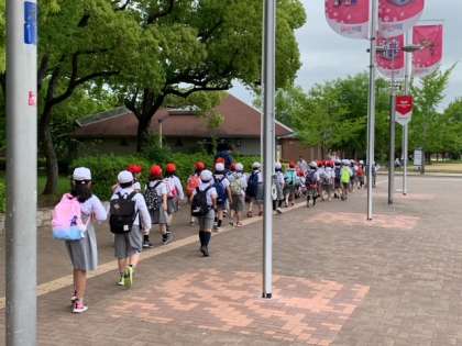 2年生は学校を出発して、長居公園に着きました。