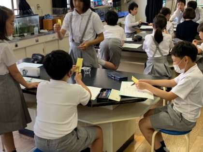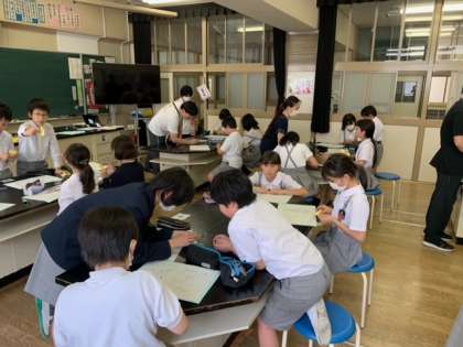 科学工作クラブは活動に向けての班わけや画用紙を使ってひらひら舞う折り紙の工作を作りました。
